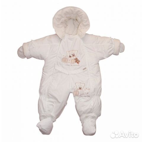 Теплые рукавички и пинетки пристегиваются к комбинезону.